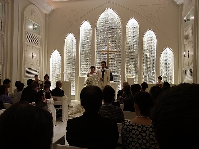 キリスト教による結婚式に引き続き、披露宴会場に入る。席に着き、乾杯の前の白ワイン飲むうち早くも、祝辞を述べる者としての指名を司会のオネーサンより受ける。そのお祝いの言葉を完了させ「日光MG」直前からの、精神の重石をすべて下ろす。