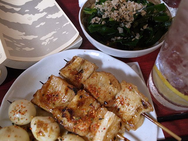 午前に甘い物をひとつ、昼時にふたつ食べたせいか、夜になっても腹が空かない。よって夜は「ユタの店」に出かけ、ほんの少々のあれこれを肴に焼酎のお湯割りを飲む。