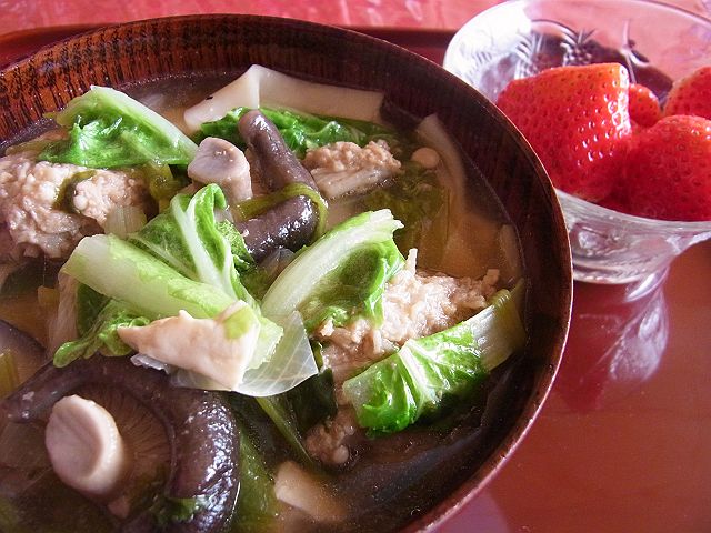 ウチのフリーズドライ味噌汁は「日光味噌梅太郎」の白味噌と日光市春日町にある「松葉屋」さんの湯波それに国産ほうれん草で作る"with LOVE"、それと「日光味噌梅太郎」の赤味噌と、これまた日光にある「グルメミート」さんのイベリコ豚に複数種の国産野菜を具にした"!Gracias pata negra!"の2種であり、しかし「松葉屋」さんも「グルメミート」さんも12月は繁忙の上にも繁忙にて、味噌汁の材料などは作っていられない。