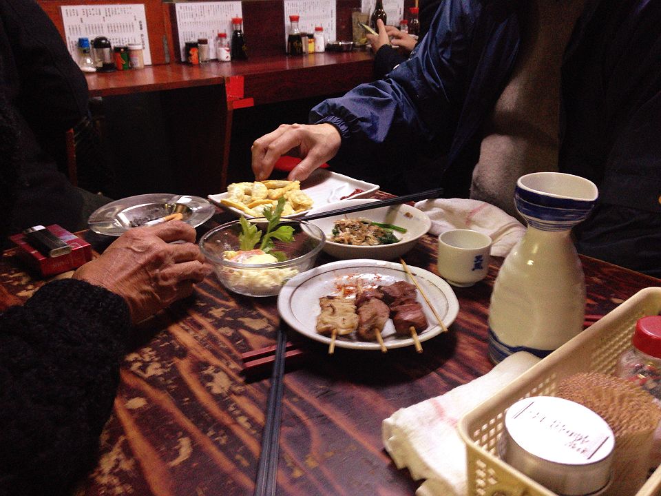約束の19時よりすこし早く店の引き戸を開けると、既にして3分の1ほどは集まっていた。卓上にはマカロニサラダと刺身の盛り合わせが用意をされている。各々が好きな酒を頼み、会が和やかに始まる。やがて鶏の唐揚げも届く。