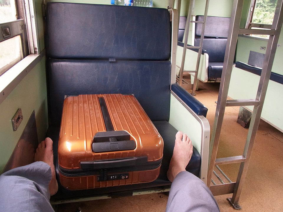 19時30分、乗務員が座席を寝台に作りかえるため、後方から回ってくる。その手際は恐ろしいほど良い。閉所の好きな僕は寝台が整うなりそそくさととこに潜り込み、通路とは緑色のカーテンで隔てられた空間に落ち着いた。