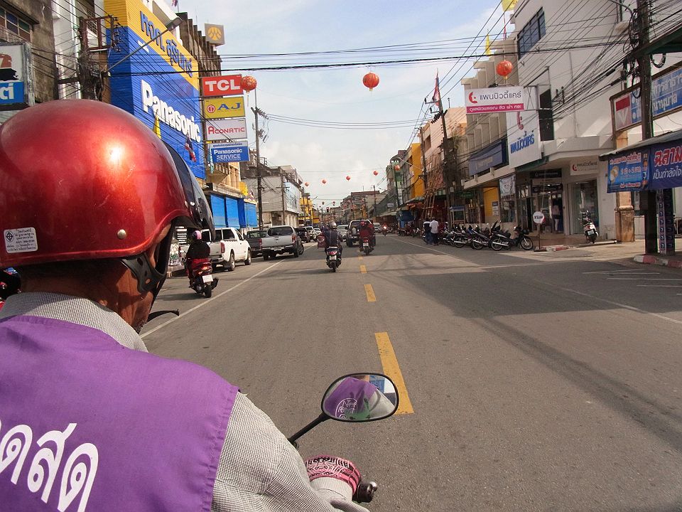 そう考えつつ"THANON ASIA 18"に出て駅を目指して歩き始めると、遠くでモータサイの運転手が手を振り僕を呼んでいる。「なるほどモータサイか」と考えつつ更に近づいていくと、後ろから別のモータサイが来て停まった。運転手の服も靴もひどくみすぼらしい。
