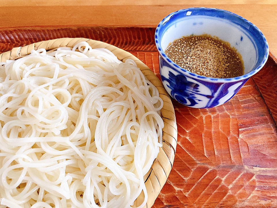 昼飯 擂り胡麻のつゆで食べる素麺
