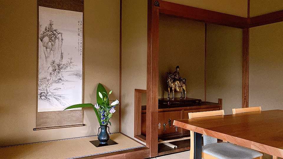 6時を過ぎたところで家内を隠居へ送る。竹内栖鳳の「晩秋」は、3日前に高久隆古の「秋景山水之図」に換えた。夏の終わりにもかかわらず、床の軸がなぜ「晩秋」だったかについては、先月23日の日記に書いた通りだ。